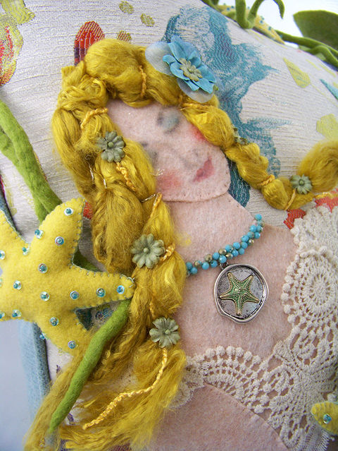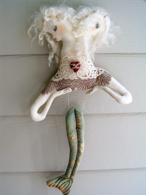 All kindred spirits are welcome here. Take my hand, and I’ll lead you through a mythically and magical world. Fairies, mermaids, and like characters are part of your dream here. A little tickle to your fancy and you’ll be wanting to stay awhile. Inspiration turns colorful fabrics, sprigs of yarn and feathers into a metamorphosis of playfulness. Paints and beads collude together, and a creature comes to life. Each of my dolls is born with a magical and romantic process that speaks as I create them. They have their own personality that emerges with a story to tell.